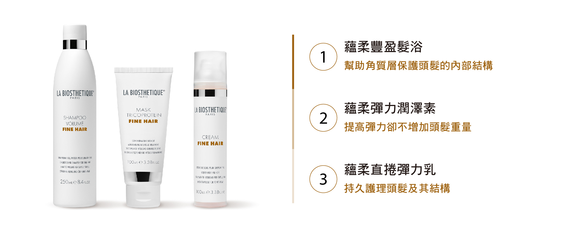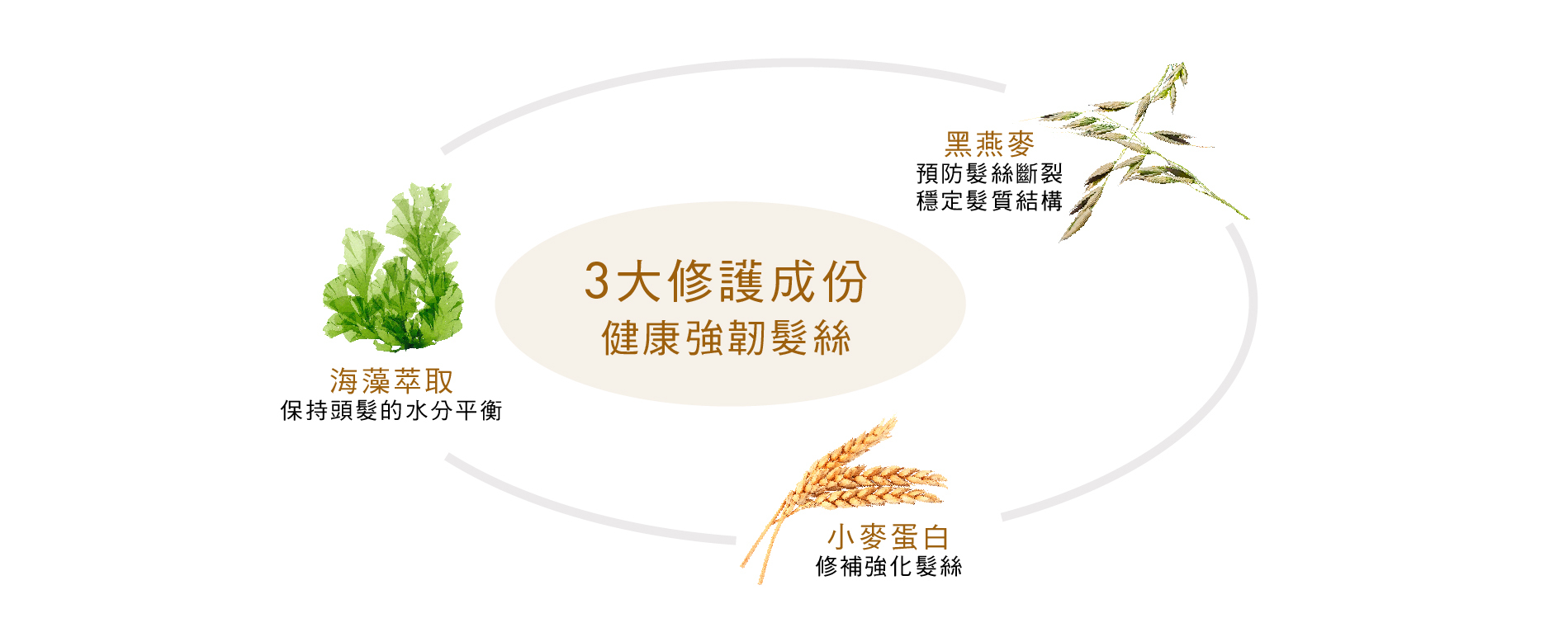 三大修護成份-創造了活性成份的混合物,可持久改善頭髮的穩定性