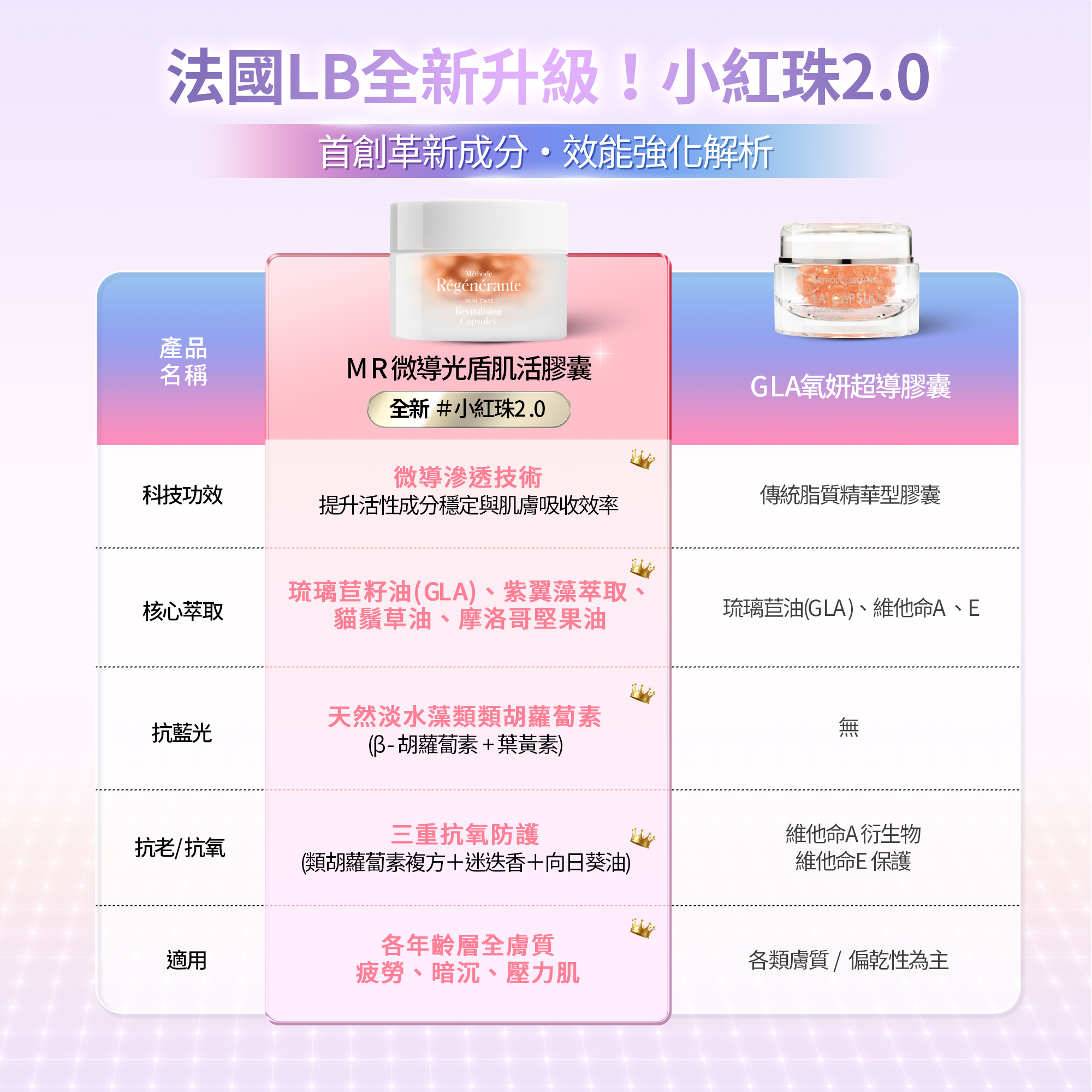 高濃度γ-亞麻酸(GLA)來源自琉璃苣籽油,潤澤乾敏、舒緩泛紅、修護屏障。