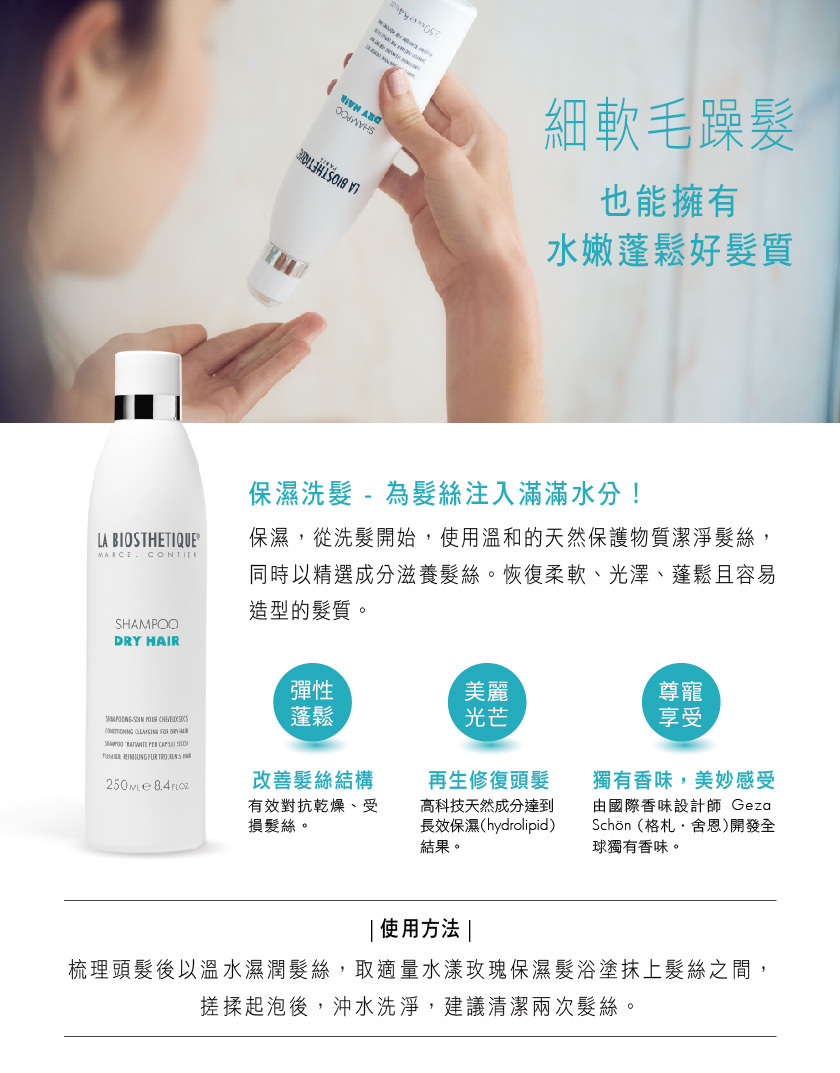 【水漾玫瑰保濕髮浴 250ml】細軟乾燥髮推薦保濕蓬鬆洗髮精