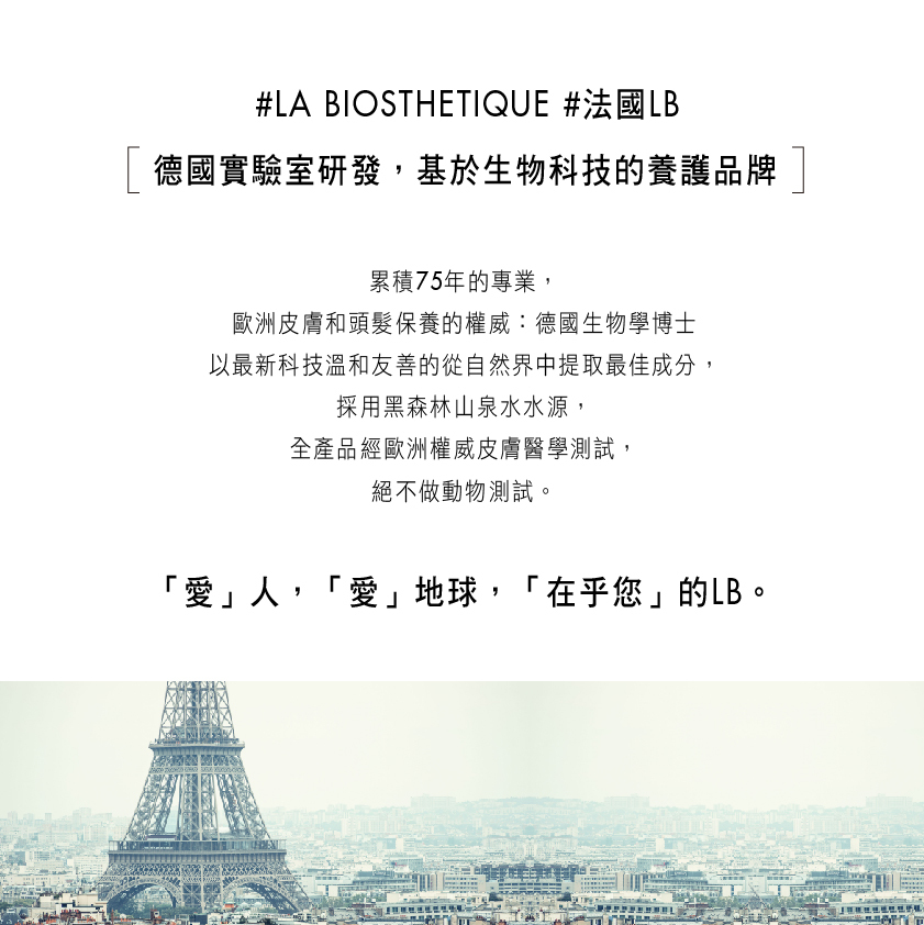 成分:請見包裝標示。製造日期/保存期限:請見包裝標示。(開封後保存月份見包裝歐盟規範圖示)。保存方式:請置於陰涼乾燥處,避免強光直射。注意事項:請放置於孩童不能觸及的地方。若不慎接觸眼睛,請以大量清水徹底沖洗。使用產品如有不適,請停止使用,並諮詢醫生。本產品富含天然植萃成分,產品色澤可能發生改變,這不會影響品質和產品安全性。製造商:D-LABOTATIIRE BIOSTHETIQUE。製造商地址:Pforzheim, GERMANY。 產地:德國。總代理:髮妝之鑰股份有限公司。 進口商 : 優泉國際有限公司。地址:台北市中山北路二段27巷4號B1/2樓